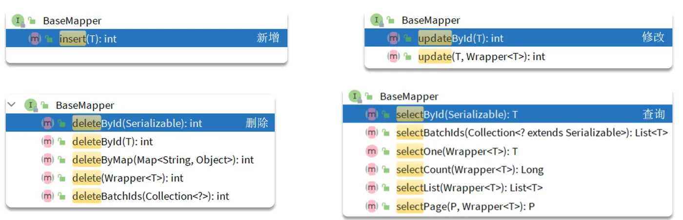 接下来我们就用MP依次替代上述增删改查的原始代码