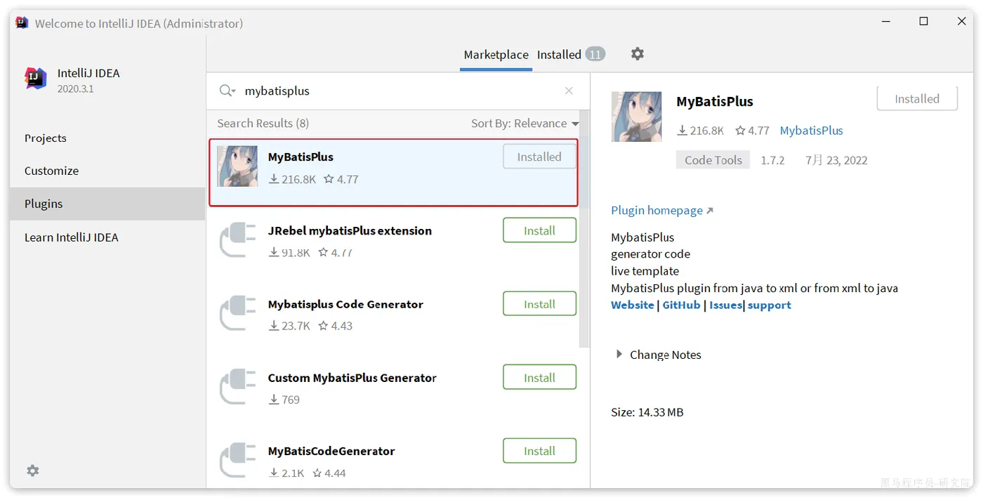 MyBatisPlus官方提供了starter,其中集成了Mybatis和MybatisPlus的所有功能,并且实现了自动装配效果。因此我们可以用MybatisPlus的starter代替Mybatis的starter: