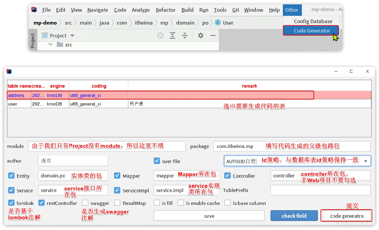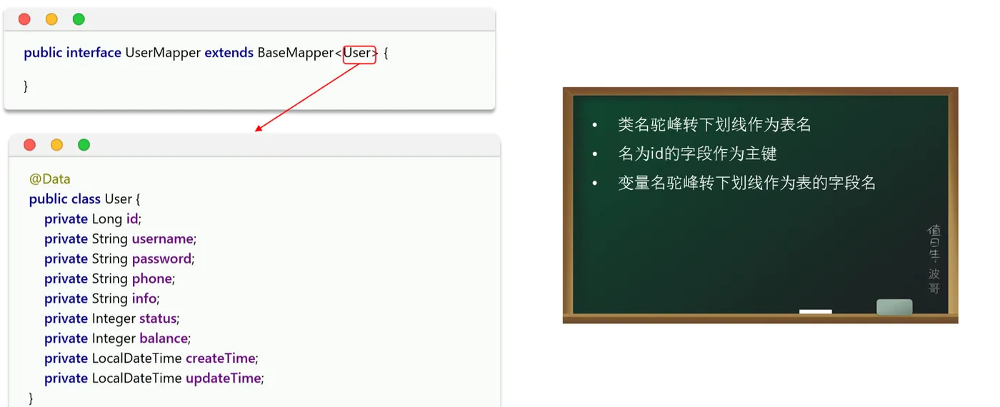 通过上面的案例我们可以发现mp的使用很便捷,用户基本是无感知的,那他是如何做到表跟属性值的映射的呢?MyBatisPlus通过扫描实体类,并基于反射获取实体类信息作为数据库表信息。