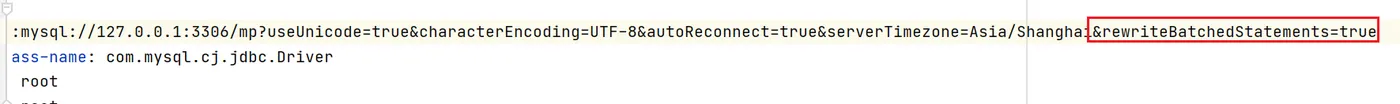 - 在连接信息的url后拼接:&rewriteBatchedStatements=true