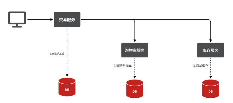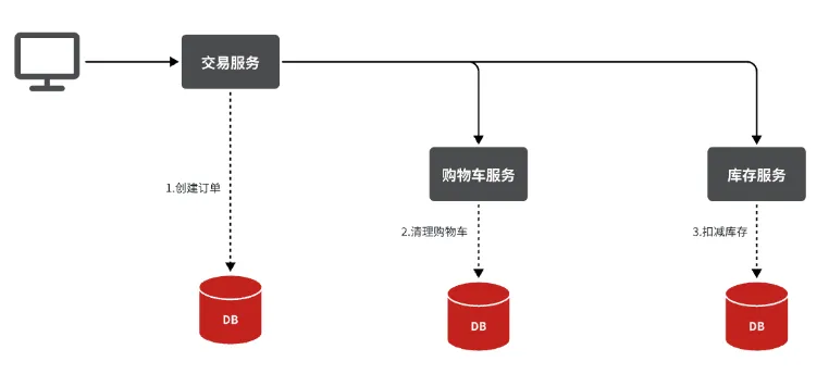 根据上图分析可知下单方法的分布式事务控制范围包括:下单、清理购物车、扣减库存,分别隶属交易服务、购物车服务、商品服务。