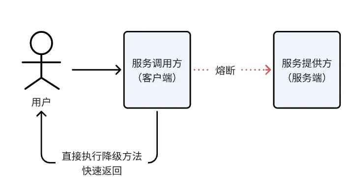 - 熔断 (Circuit Breaker) 熔断机制用于在服务出现问题时快速失败,避免调用链路中的服务相互等待,导致整体系统响应变慢甚至不可用。