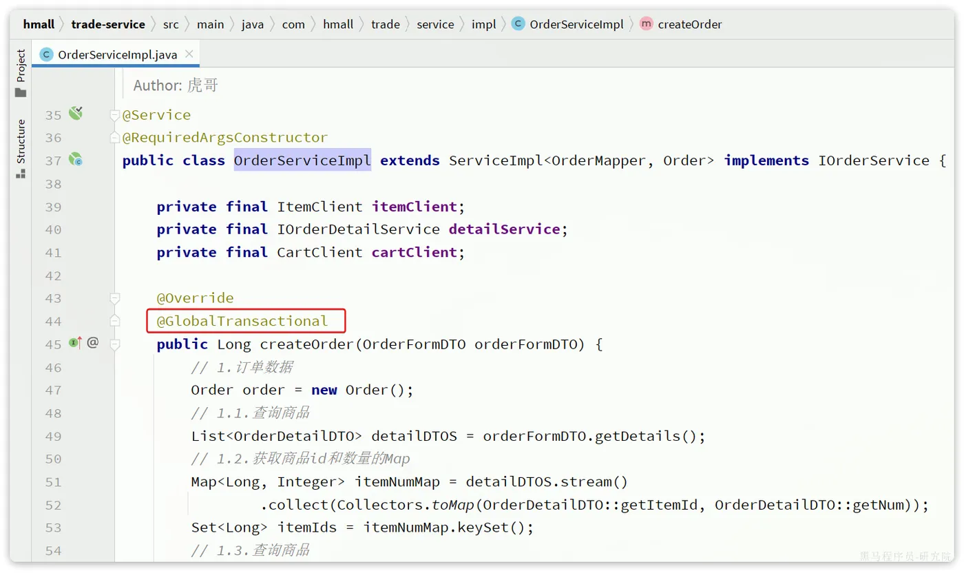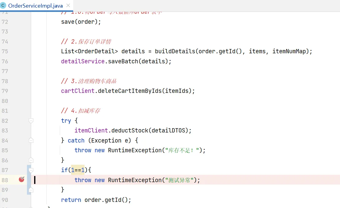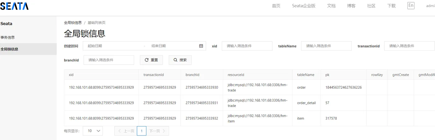 将上边的方法改为使用seata控制分布式事务并进行测试。