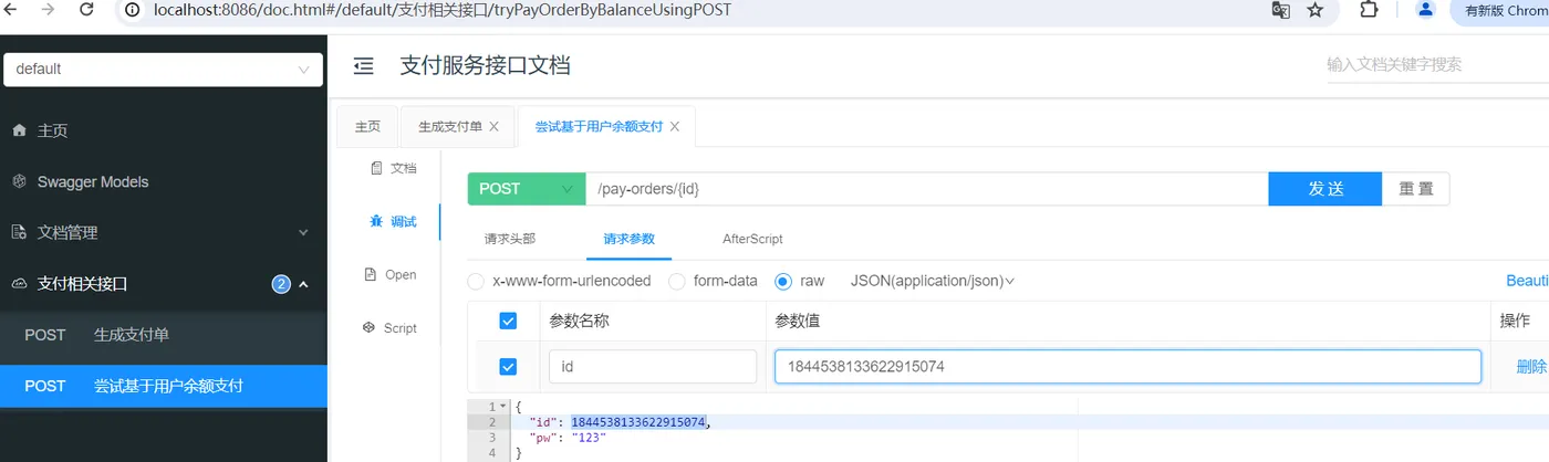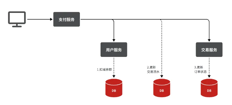 除下单业务外,用户如果选择余额支付,前端会将请求发送到pay-service模块。而这个模块要做三件事情: