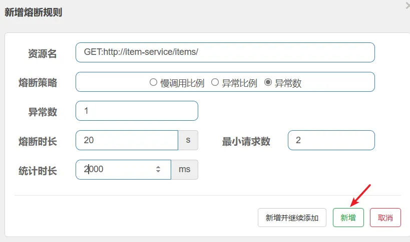 - closed:关闭状态【默认】,断路器放行所有请求,并开始统计异常比例、慢请求比例、异常数。超过阈值则切换到open状态
