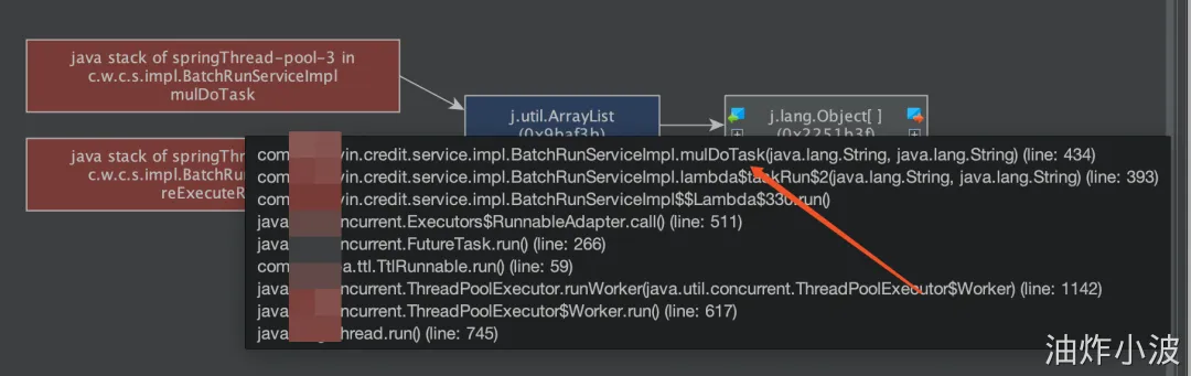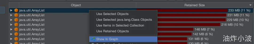 - 首先可以找到最大的对象,一般情况下是大对象引起的full gc。还有一种情况是,不像这么明显是四个大对象,也可能是比较均衡的十几个50mb的对象,具体情况还需要具体分析。