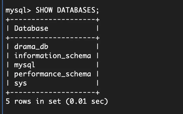 你应该能看到刚刚创建的 drama_db 数据库,说明配置已生效。