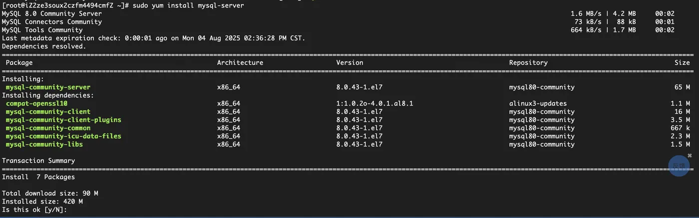 第一步:在阿里云服务器上安装 MySQL