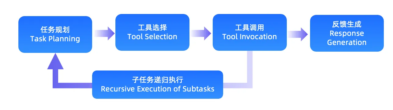 Agent有很多工作模式,我们在此介绍一种典型的Agent工作模式,将其概括为以下核心环节: