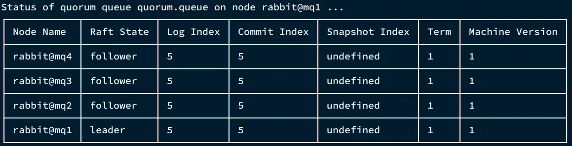 我们先查看下quorum.queue这个队列目前的副本情况,进入mq1容器:
