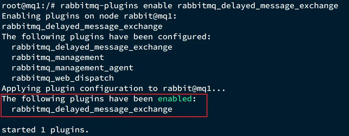 执行时,请将其中的 -it 后面的mq替换为你自己的容器名。进入容器内部后,执行下面命令开启插件: