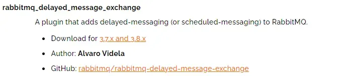 RabbitMQ官方的插件社区地址:链接,其中包含各种各样的插件,包括我们使用的DelayExchange插件: