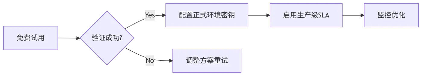 - 阶段1:使用免费额度进行小规模功能验证(<1000次调用)