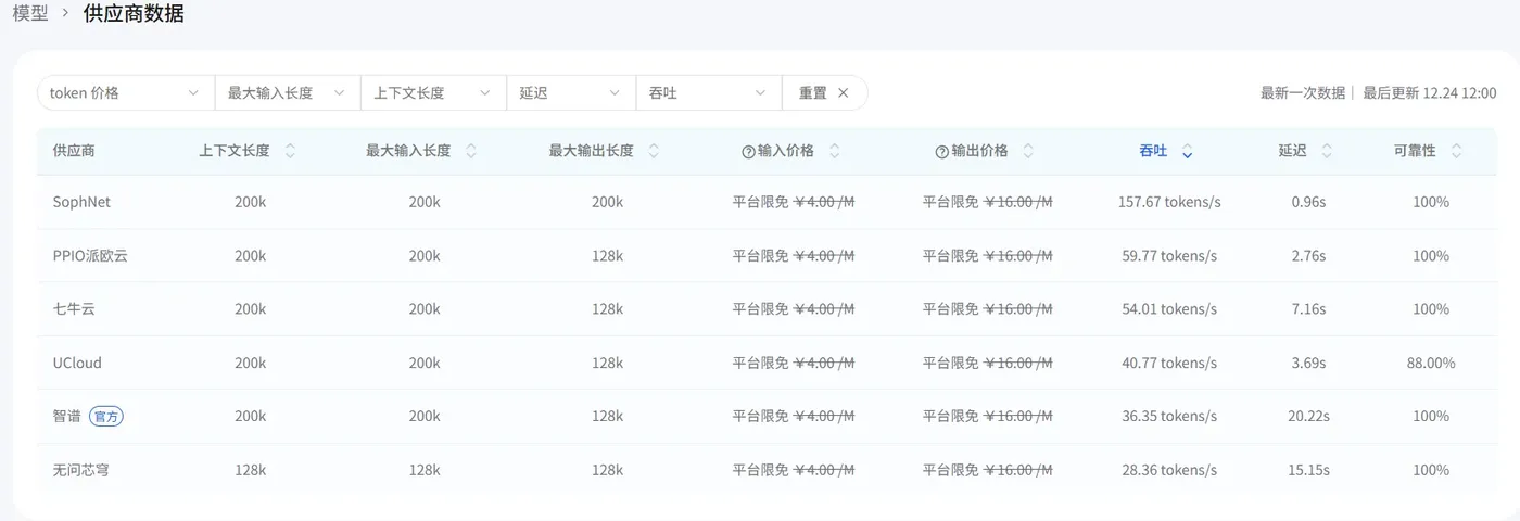 - 智谱官方的GLM-4.7提供最低延迟(0.61秒),适合实时性要求高的场景