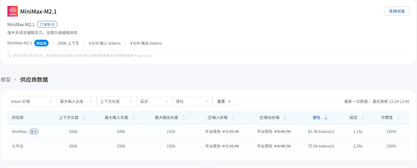 AI Ping平台针对两款模型进行了系统化性能测试(数据截至2025年12月23日),测试环境配置: