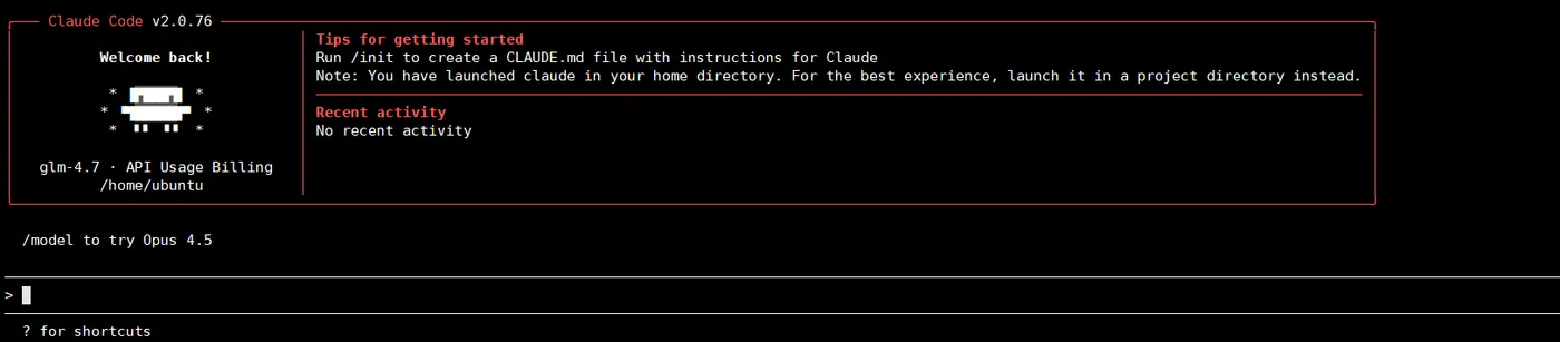 claude # 启动Claude Code # 选择"信任此文件夹(Trust This Folder)"后即可使用