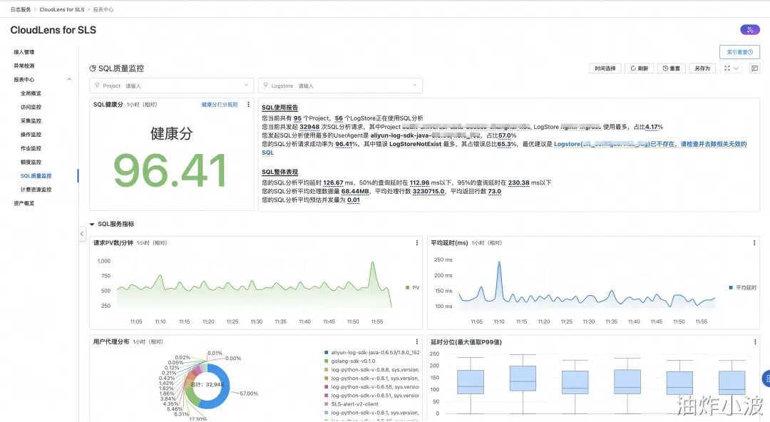 在 SLS 中,用户可以通过 SQL 对日志数据(结构化、半结构化、无结构化)进行查询和分析。随着用户对 SQL 使用程度的不断加深,越来越多的用户希望了解自己使用 SQL 分析时的服务反馈(如请求量、成功率、数据量等等),以便对数据和分析行为进行精细管理或优化治理。