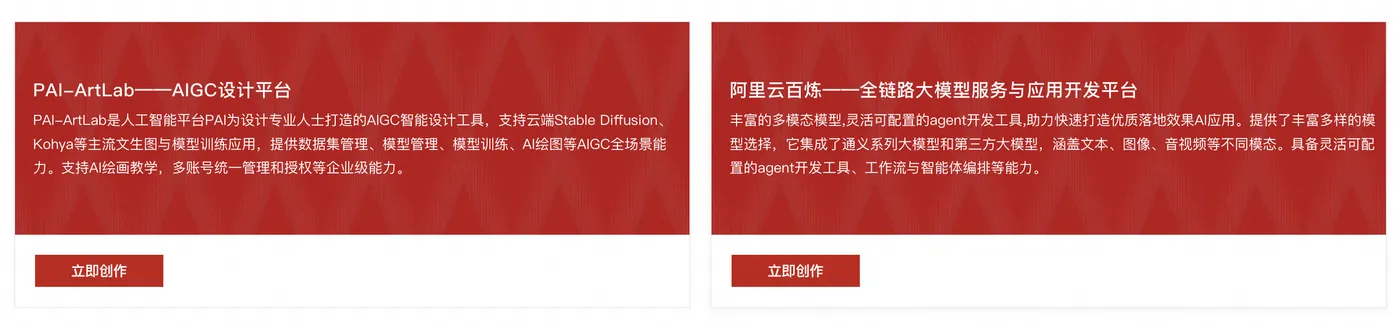 AIGC设计平台PAI-ArtLab:PAI-ArtLab 是阿里云人工智能平台 PAI 为企业级 AI 生图场景打造的一站式 AIGC 设计平台,支持云端Stable Diffusion、ComfyUI、Kohya 等主流文生图与模型训练工具,提供数据集管理、模型管理、模型训练、AI 生图、行业 AIGC 应用、自定义工具部署、服务集成的全场景全生命周期管理能力。