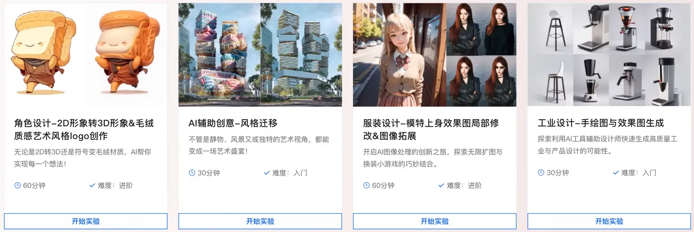 所有实验均基于阿里云PAI-ArtLab平台与百炼平台构建,操作界面友好,大幅降低AI工具使用门槛,让参赛者更专注于创意本身。同时,学习资源的内容紧贴竞赛需求,兼顾技术深度与实践导向,无论是初学者还是专业设计师,都能在低门槛、高效率的实验环境中找到创意实现的方法,即刻开启AI设计之旅!