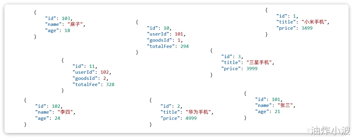 随着业务发展,需要在es中存储的文档也会越来越多,比如有商品的文档、用户的文档、订单文档等等: