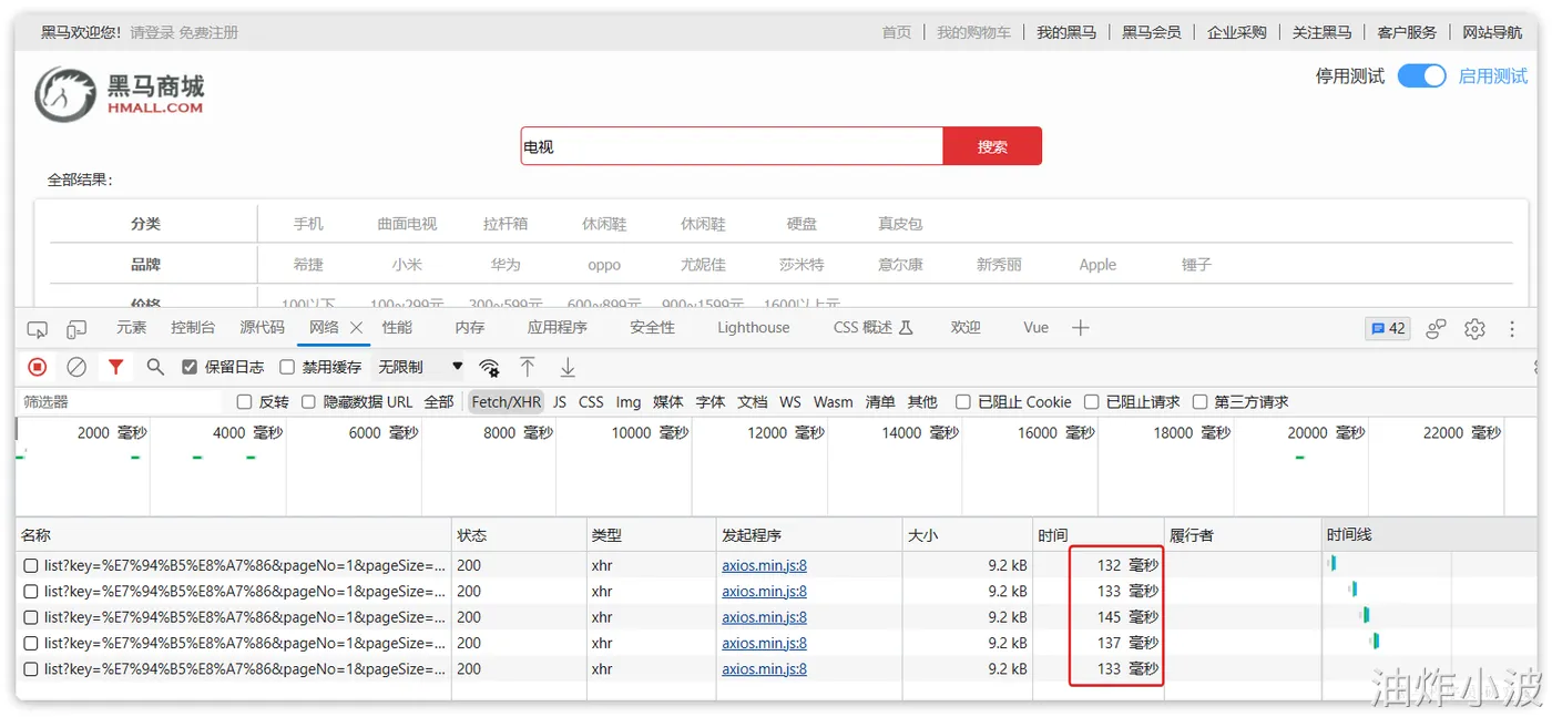 黑马商城的商品表中仅仅有不到9万条数据,基于数据库查询时,搜索接口的表现如图: