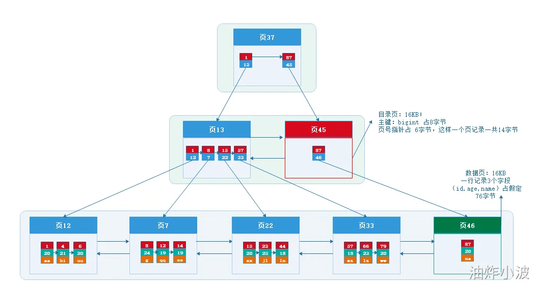 • 2)逐条遍历每行数据(每个叶子节点),比如第1次拿到id为1的数据