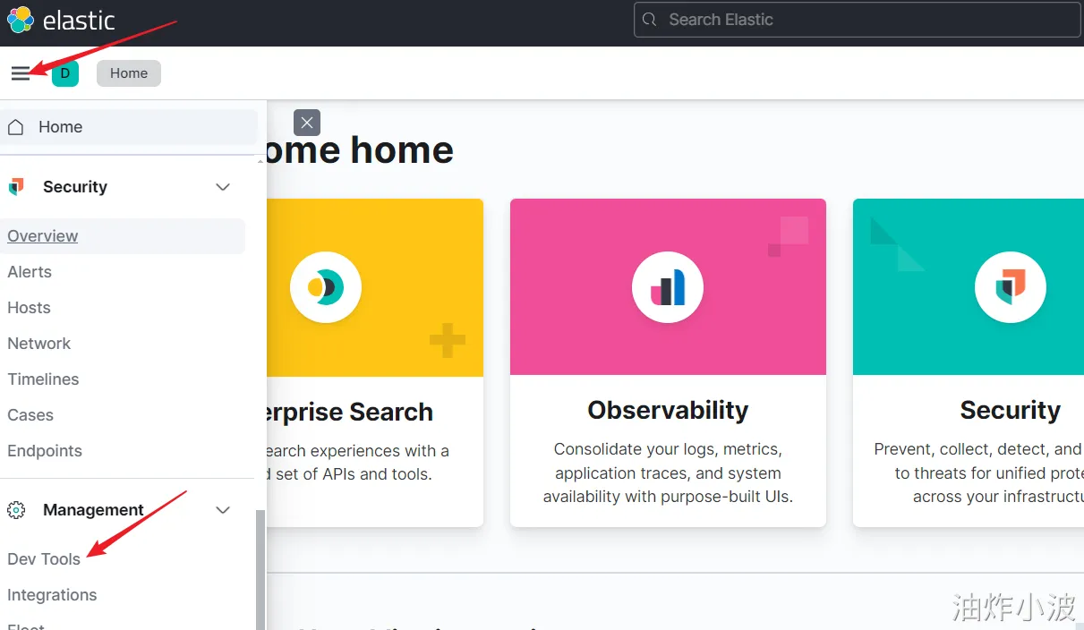 根据前边对倒排索引的理解,倒排索引就是根据词找文档,词就是索引,所以要想完成搜索功能开发第一步就是要创建索引,有了索引就可以搜索了。打开Kibana,进入DevTools,如下图: