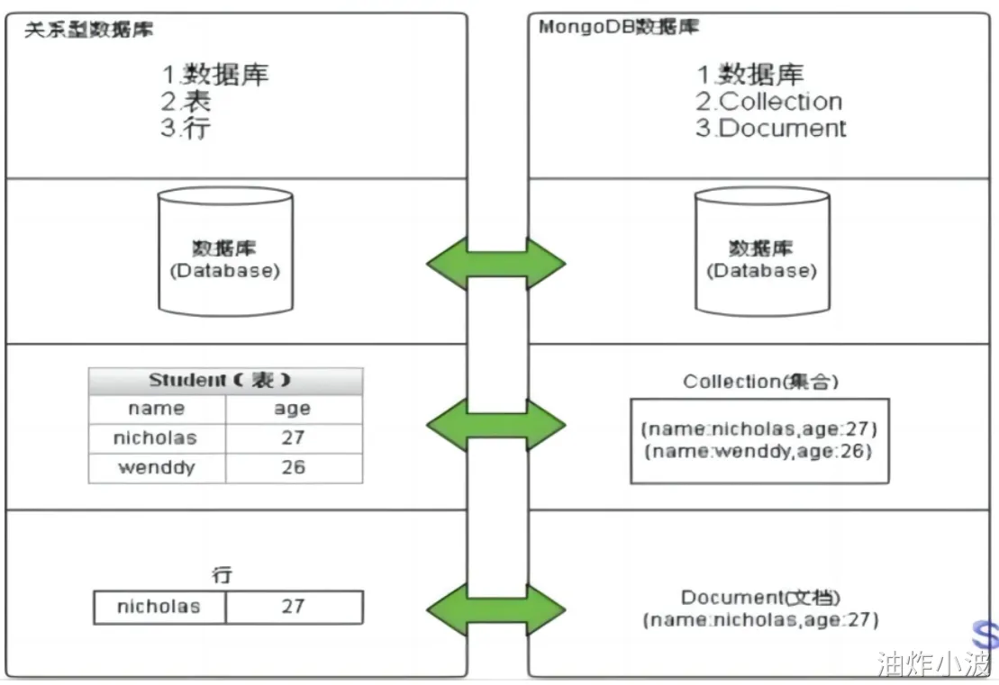 MongoDB的最小存储单位就是文档(document)对象。文档(document)对象对应于关系型数据库的行。数据在MongoDB中以BSON(Binary-JSON)文档的格式存储在磁盘上。