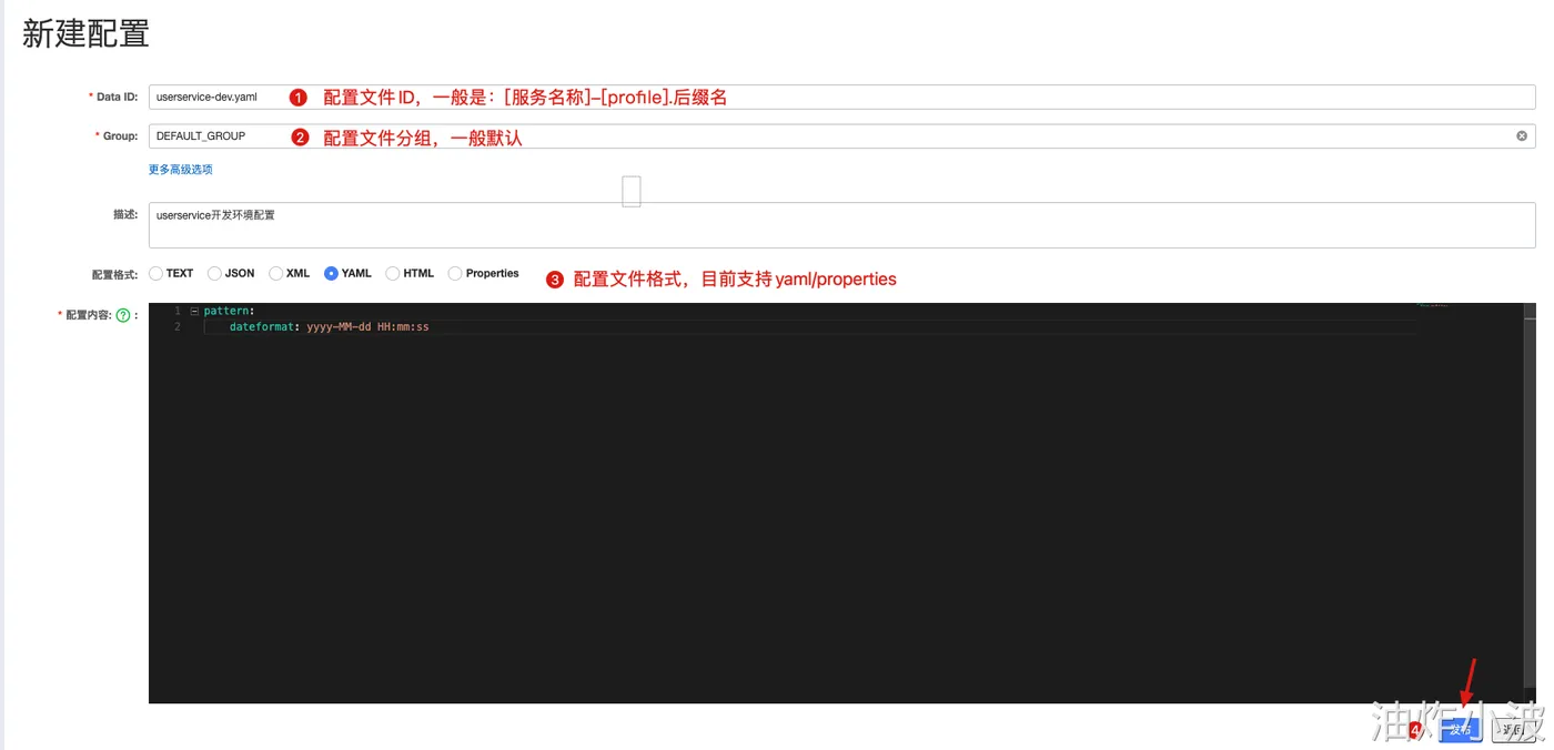 • [spring.application.name]-[spring.profiles.active].yaml,例如:userservice-dev.yaml