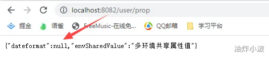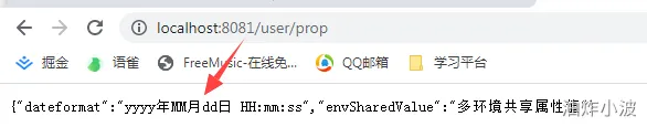 需注意,此配置类我们约定死了配置的前缀,即默认:约定大于配置,后续此配置类将只获取pattern开头的配置信息,通过拼接属性值得到完整的配置信息,此例中即:前缀(pattern)+ 属性(dateformat),通过此唯一key去nacos获取配置信息。重启应用后发现同样生效。