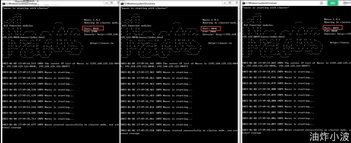 最后我们分别启动3个nacos节点,启动方式同单个启动无差异