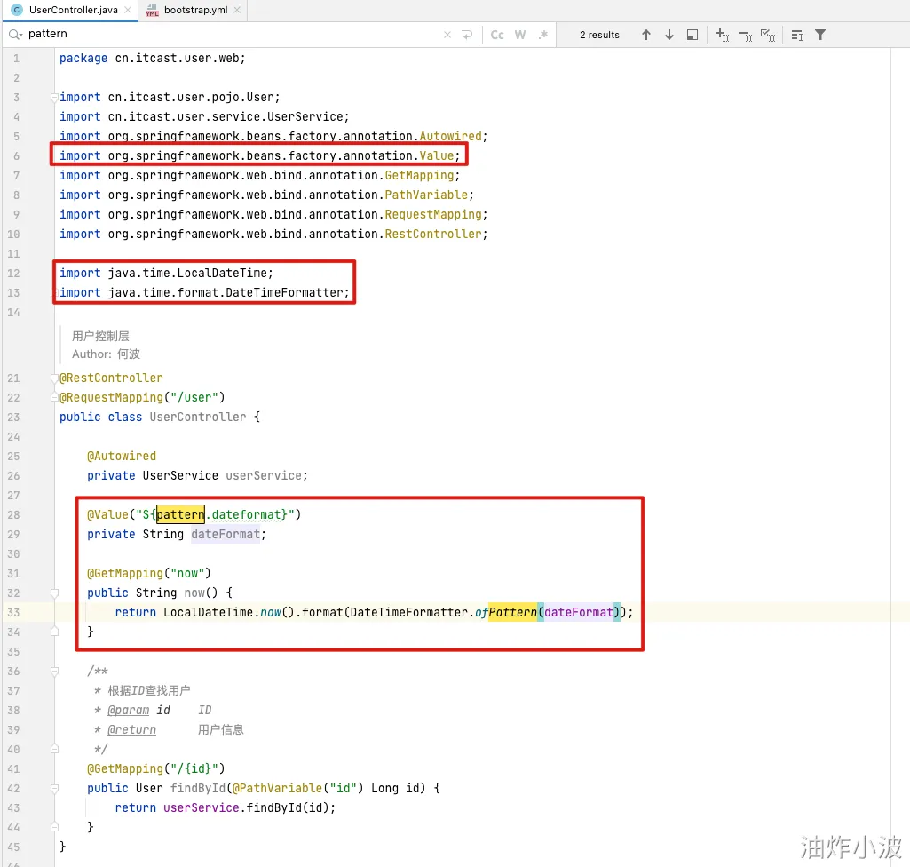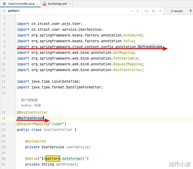 在user-service中新增配置文件:bootstrap.yaml,内容如下: