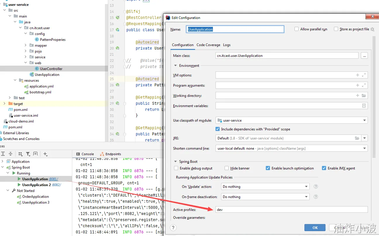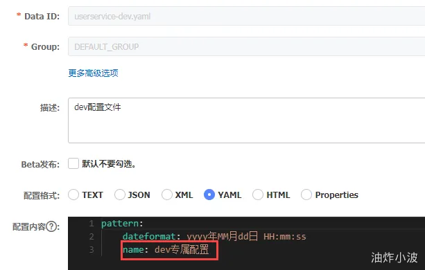 以本例为准读取的即为:userservice-dev.yaml