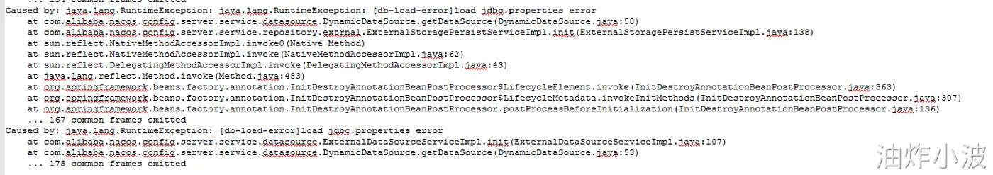 此时启动会发现会因数据库连接失败而启动失败,因此下一步我们需要配置nacos数据源
