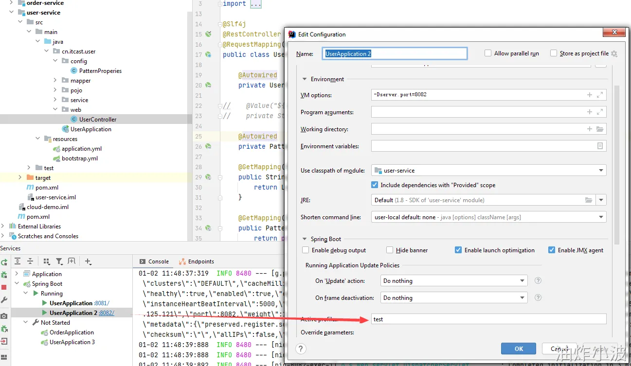 此时我们修改8081、8082两个启动类环境配置信息如下: