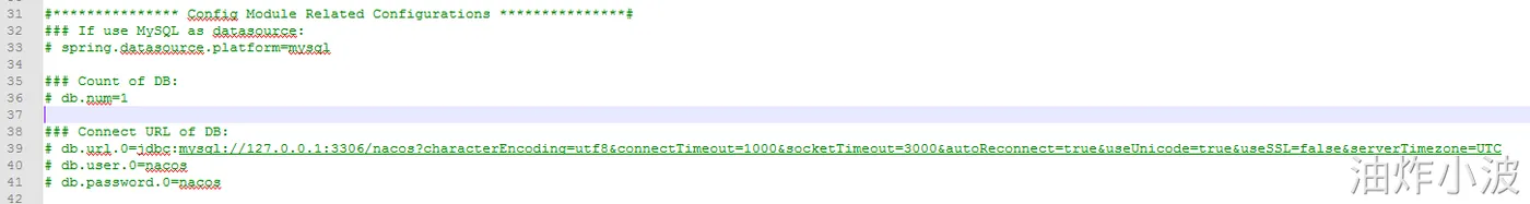 在nacos-config文件夹中编辑:application.properties,会发现下面一段注释信息,因此我们接下来需要修改的就是此处
