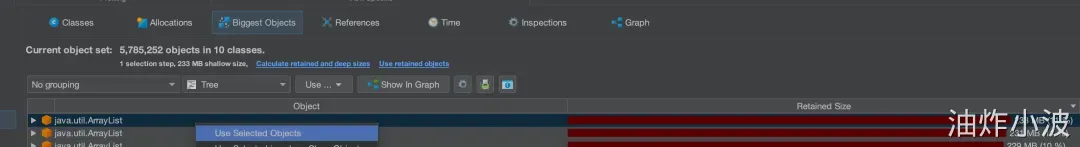 首先选择Biggest Objects,查看当时堆内存中最大的几个对象。