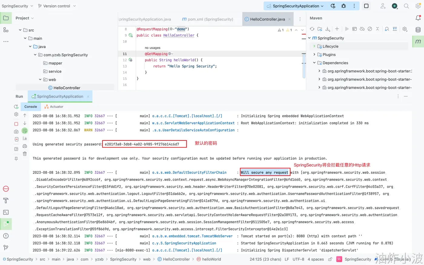 ●密码:控制台输出,这里就是:e201f3a8-3db8-4a02-b985-9f276b14c6d7