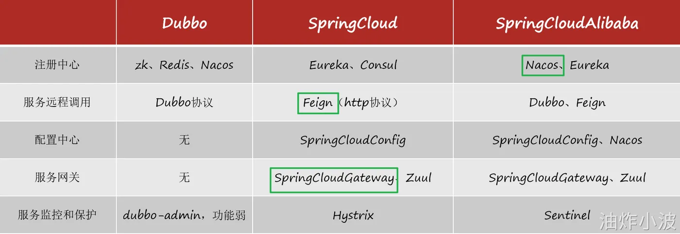 - 这里也有可能问到Eureka和Nacos的区别,我贴个图有点印象(比较少,了解即可)