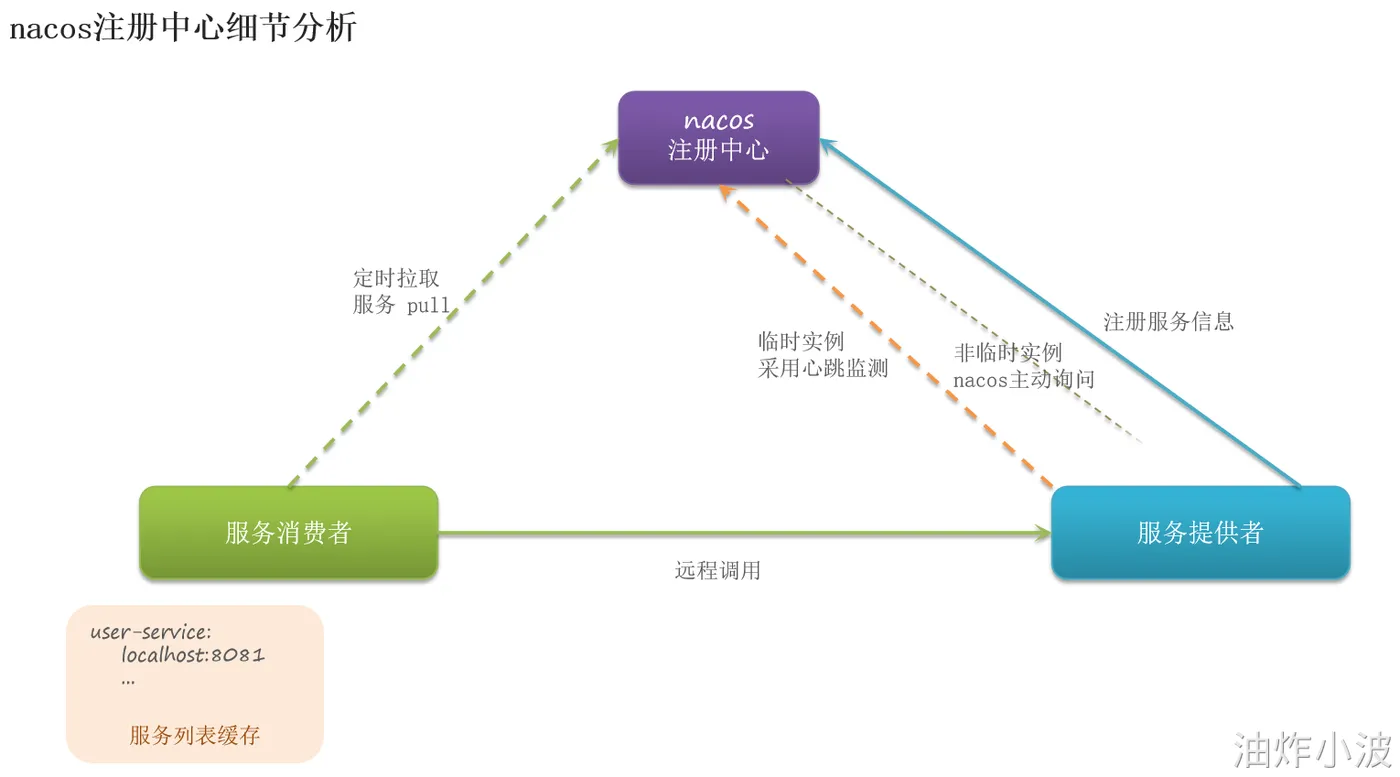 Nacos支持服务端主动检测提供者状态:临时实例采用心跳模式,非临时实例采用主动检测模式临时实例心跳不正常会被剔除,非临时实例则不会被剔除