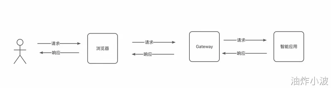 下图以典型的 AI 会话场景为例:用户所连接的 Gateway 不仅需要发送请求,还需要处理推理响应结果,并将结果推送给浏览器,形成完整的交互闭环。