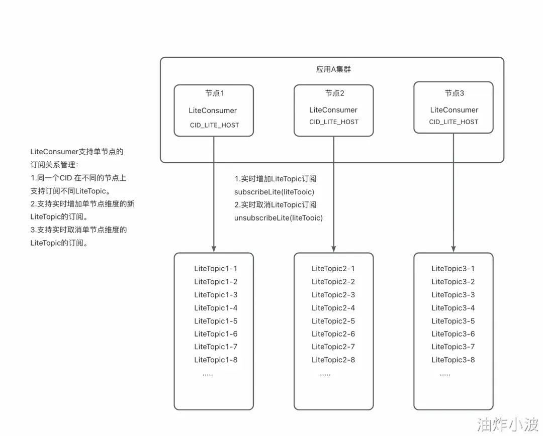 ●动态退订能力:运行时实时取消单个节点对特定 LiteTopic 的订阅,实现精准的资源释放与流量治理。