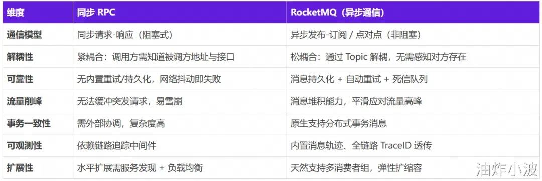 3.3 同步 RPC 与 RocketMQ 异步通信的对比
