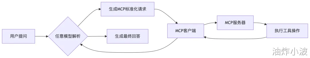 • MCP在模型与工具间插入标准化中间层,实现双向解耦