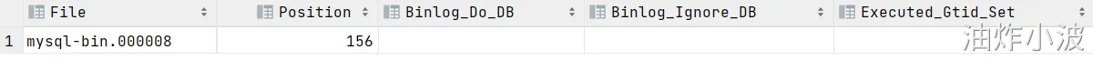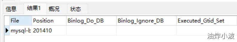 通过show master status;查看 ,结果显示 mysql-bin.000001