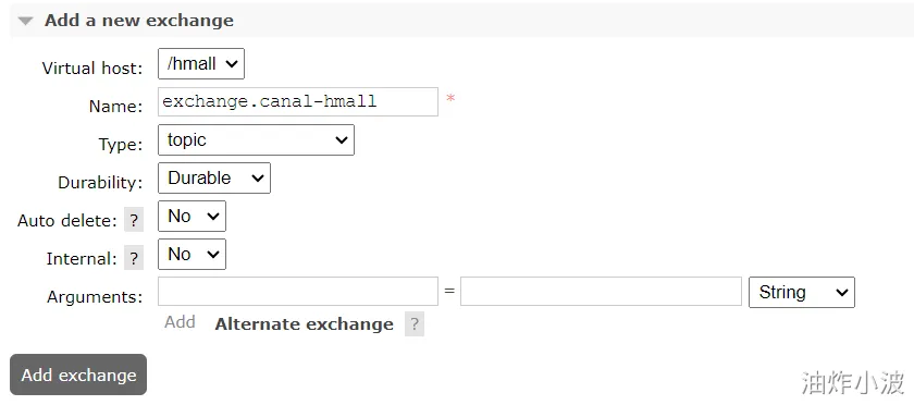 创建exchange.canal-hmall交换机: