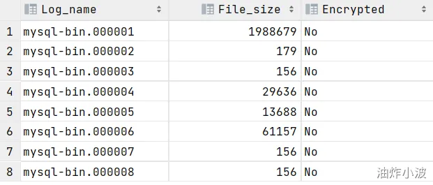 - 查看binlog日志文件列表: