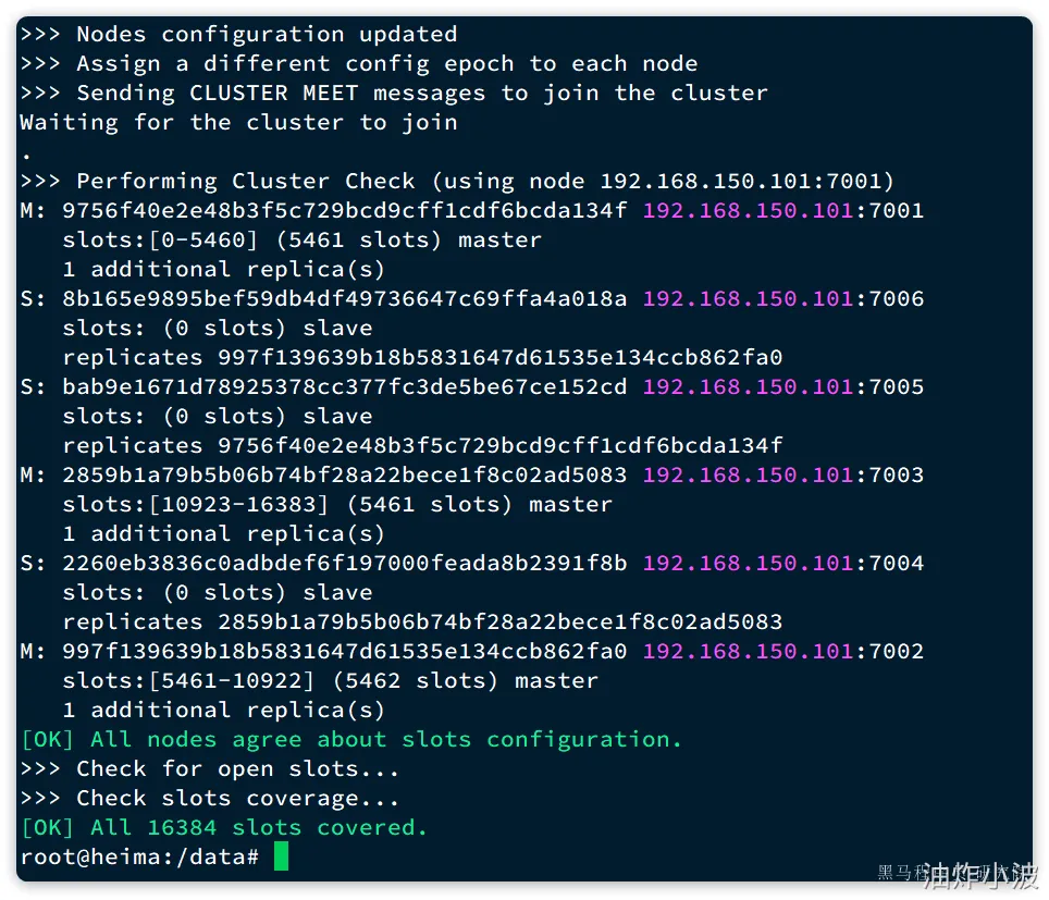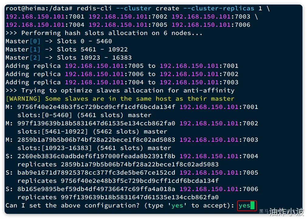 这里展示了集群中master与slave节点分配情况,并询问你是否同意。节点信息如下: