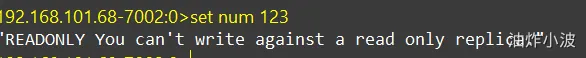 # 连接r3 docker exec -it r3 redis-cli -p 7003 # 认r1主,也就是7001 slaveof 192.168.150.101 7001