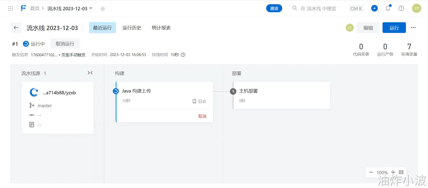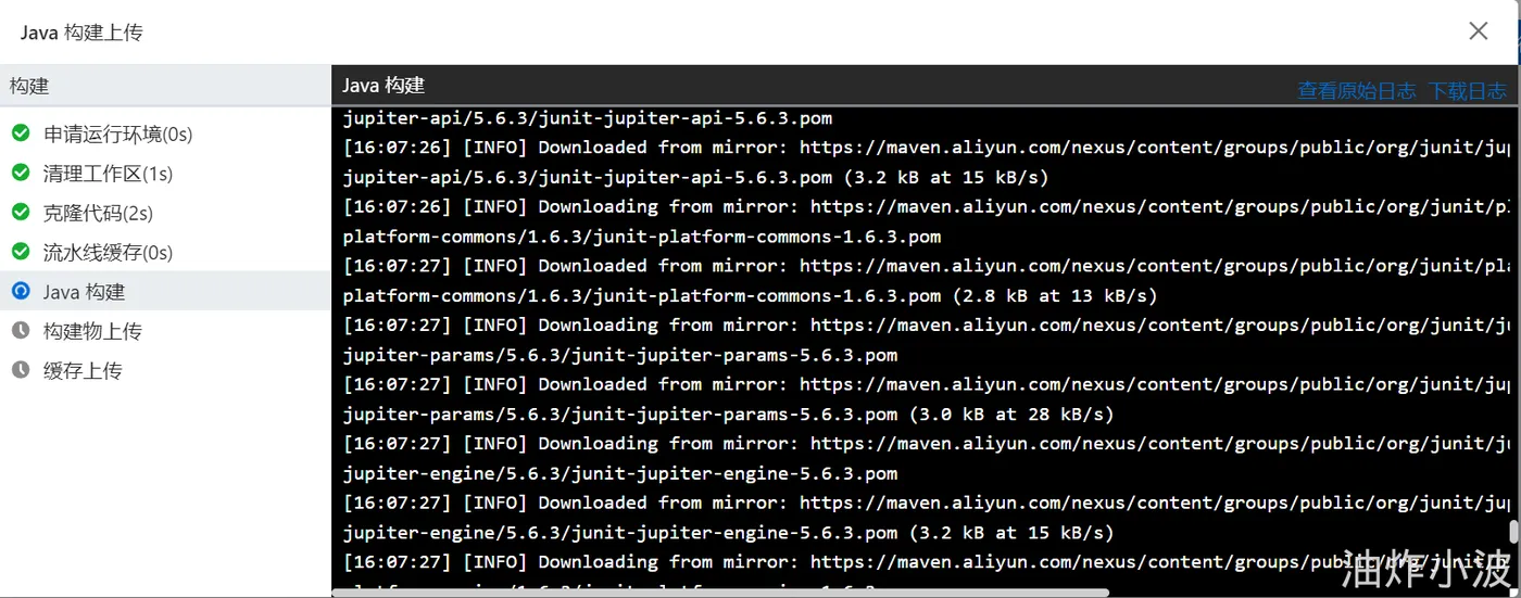 - 点击上面中间模块的:日志,可以看到项目开始构建打包